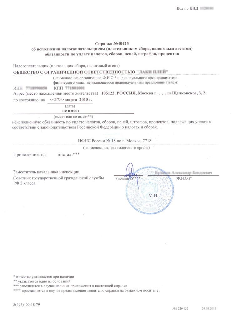 Как и в предыдущем примере, справка часто требуется при участии в тендерах, для проверки контрагентов, заключении договоров и взятии кредитов. Форма обеих таких справок, которые можно получить в налоговой инспекции, утверждена приказом ФНС от 28.12.2016 № ММВ-7-17 [email protected] Срок подготовки документа составляет 5 рабочих дней.